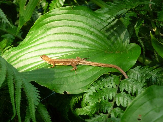 サワキキョウ(沢桔梗)もある。 オミナエシ(女郎花)や小さな白いカラマツソウ(唐松草)もあった。 アサギマダラ蝶が好むフジバカマ(藤袴)、そろそろ満開近し!キンミズヒキ(バラ科)。 カリガネソウには蜂が・・・、トカゲ?大きな葉に乗っていた!