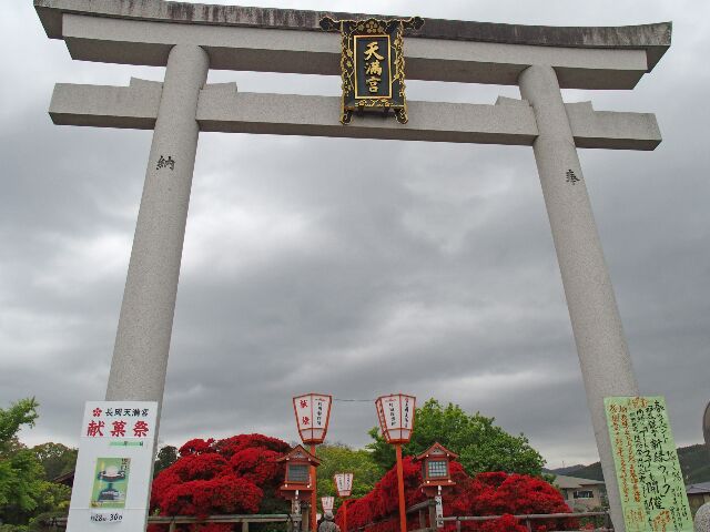 17日午後、キリシマツツジで有名な長岡天満宮の八条ヶ池を訪ねた。深紅のキリシマツツジは一気に開花されていた。天満宮のキリシマツツジは、樹齢100~150年位と推定されており、約100株が植えられていて市の「天然記念物」に指定されている。