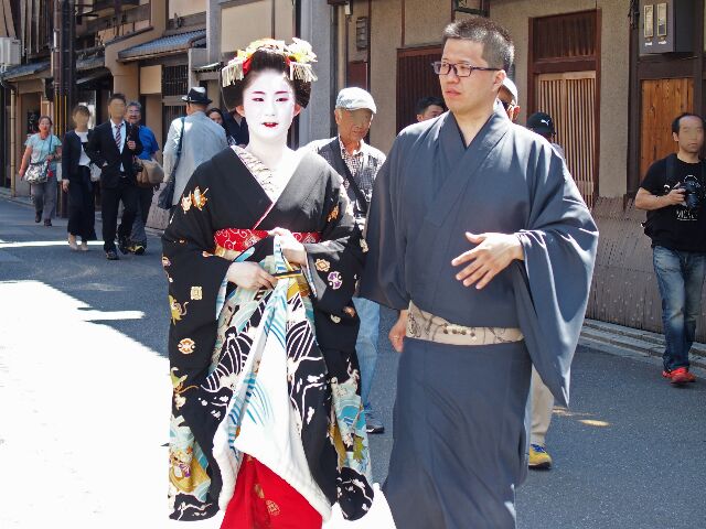 四条花見小路の信号待ちで、満面の微笑みの「佳つ笑」ちゃん。