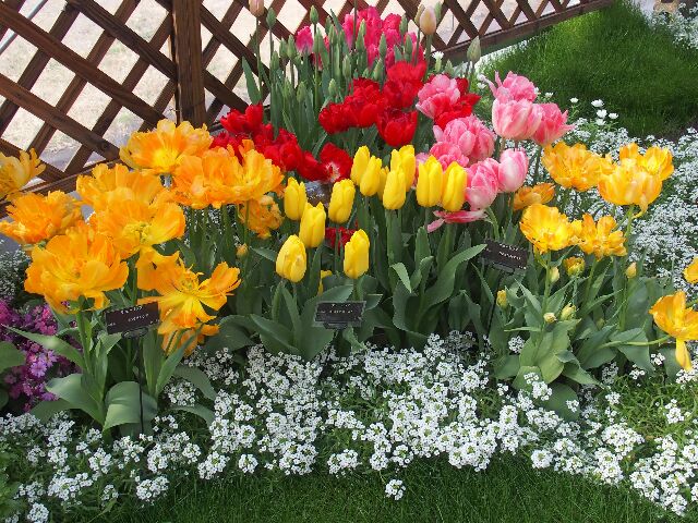 大芝生地の会場内に一歩を足を踏み入れたら色彩りどりの草花が展示していた。